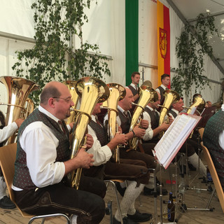 Am Samstagabend sorgten Die Edlseer für ausgezeichnete Stimmung im großen Festzelt und am Sonntag gestalteten dann wir den Frühschoppen im Anschluss an die Hl. Messe und den Festansprachen. Trotz einer durchaus kurzen Nacht für einige Musikerinnen und Musiker spielten wir ein tolles Frühschoppenprogramm im voll besetzten Festzelt.
