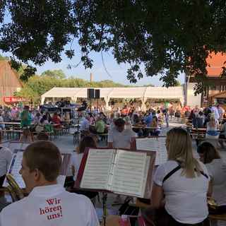 Wir fieberten diesem Auftritt schon lange entgegen und machten uns schließlich am Freitagnachmittag mit dem Bus auf den Weg in die Südsteiermark. Gut gelaunt und bei optimalen Open-Air Bedingungen spielten wir ein Best-of unseres Programms bestehend aus Märschen, Polkas und modernen Medleys. Damit konnten wir die Stimmung der zahlreich gekommenen Besucher schon richtig aufheizen für die darauffolgenden Auftritte der Gasgeber, Markus Krois, die Lauser und natürlich der Südsteirer.